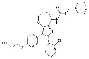 化(huà)學名:{[2-(2-氯苯基)-3-{4-[(2-18氟乙基)氧基]苯基}-5,6,7,8-四氫氧雜(zá)環庚熳并[3,2-c]吡唑-8-基]氨基}甲烷酸苄基酯